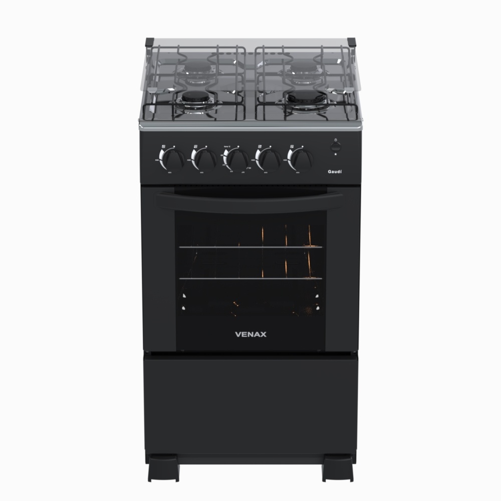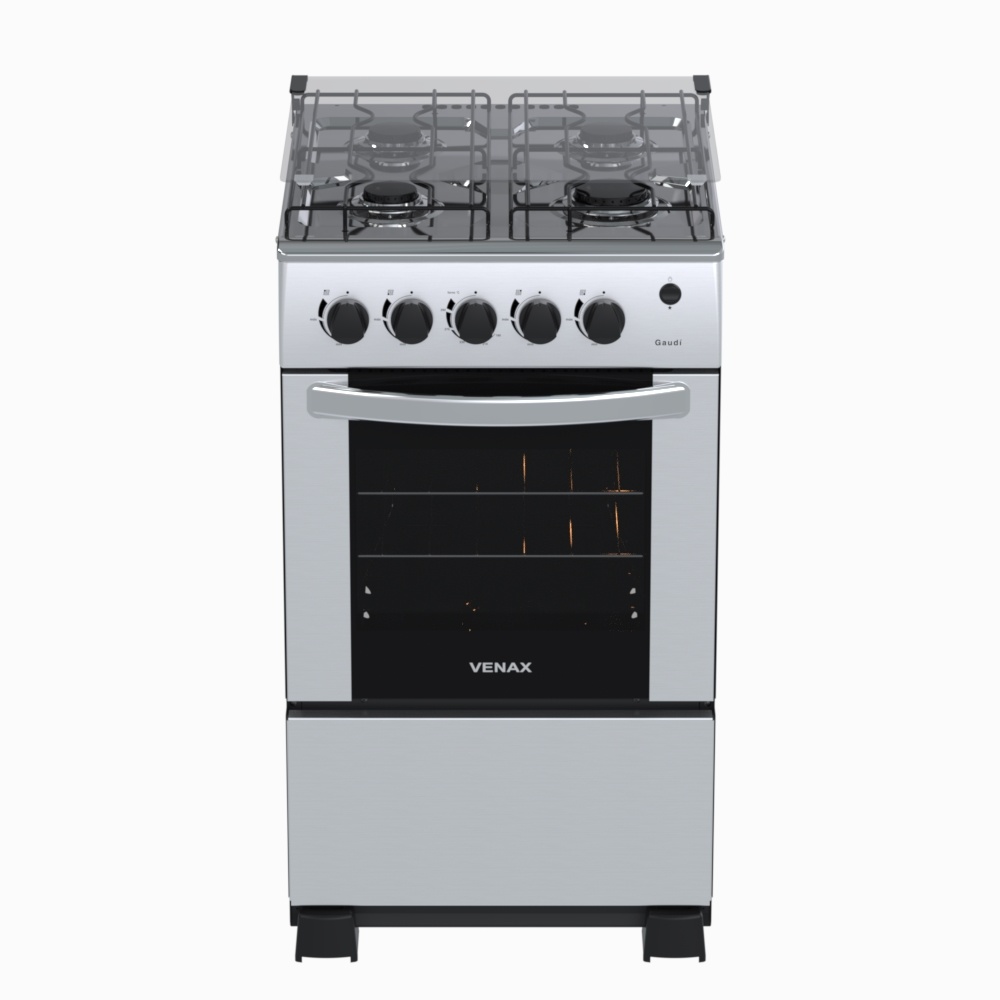 Fogão a Gás 4 Bocas Gaudi GIII, Com Mesa em Inox, com Acendimento Total, Botões Removíveis, com Tampa de Vidro, Vidro na Porta do Forno, Luz no Forno, Puxador da Porta do Forno em Aço Pintado, Porta Removível, Duas Grades Deslizantes no Forno e Forno Easy Clean.